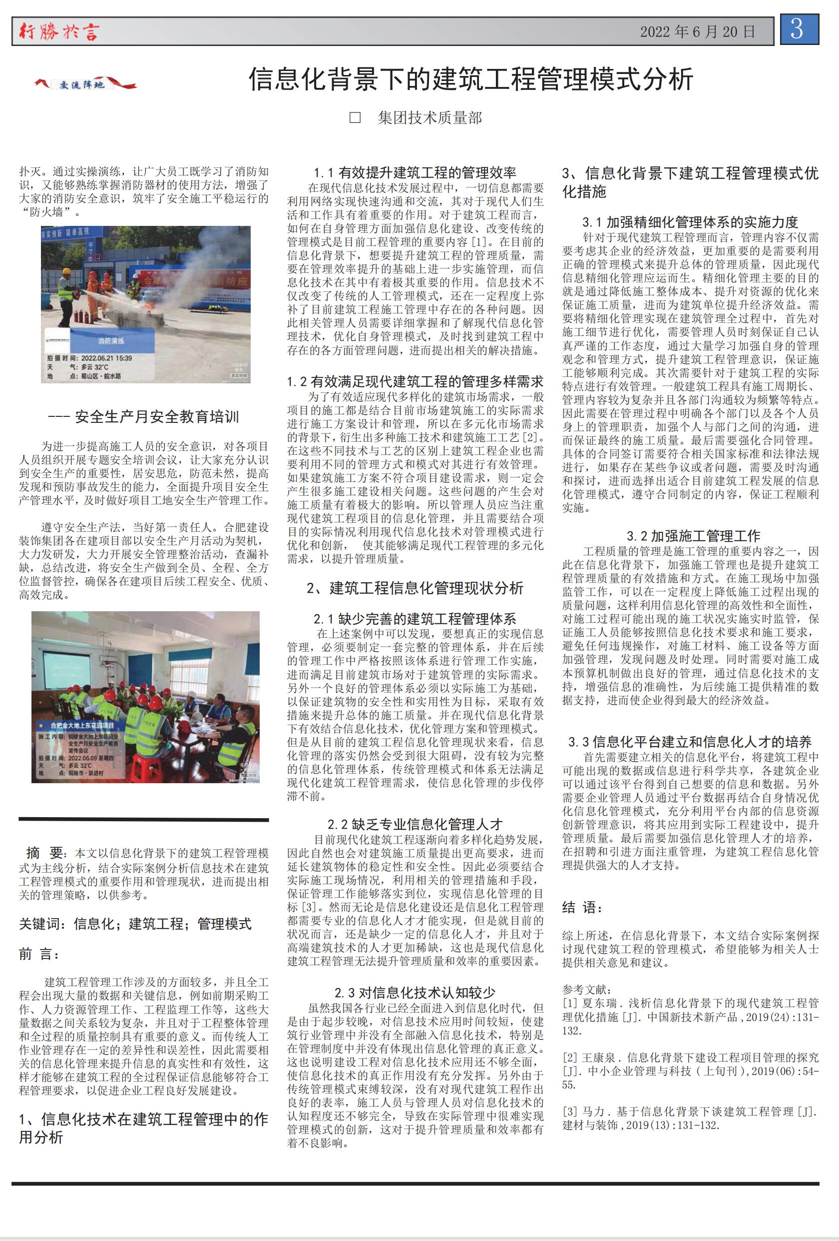 安徽省建設集團有限公司創立于1994年,是依照合肥市建委合建公 〔2003〕319號文件精神,由國有企業改制后注冊成立的有限責任公司。擁 有建筑工程施工總承包國家壹級資質,建筑裝修裝飾工程專業承包壹級,地 基與基礎工程專業承包壹級............